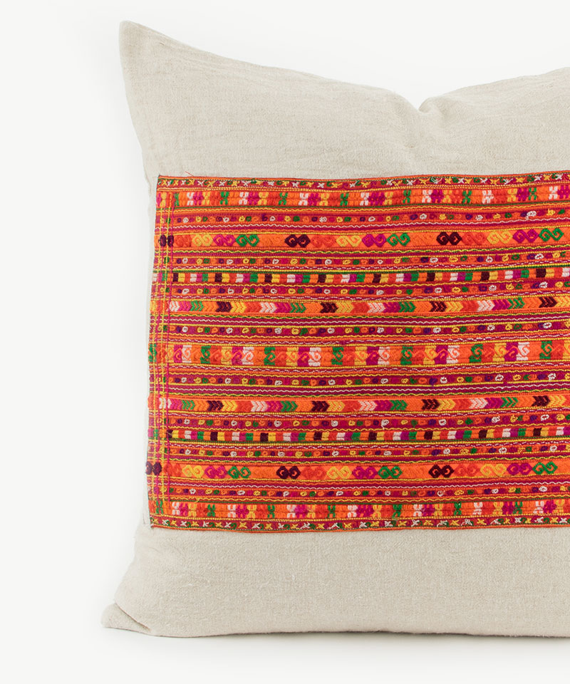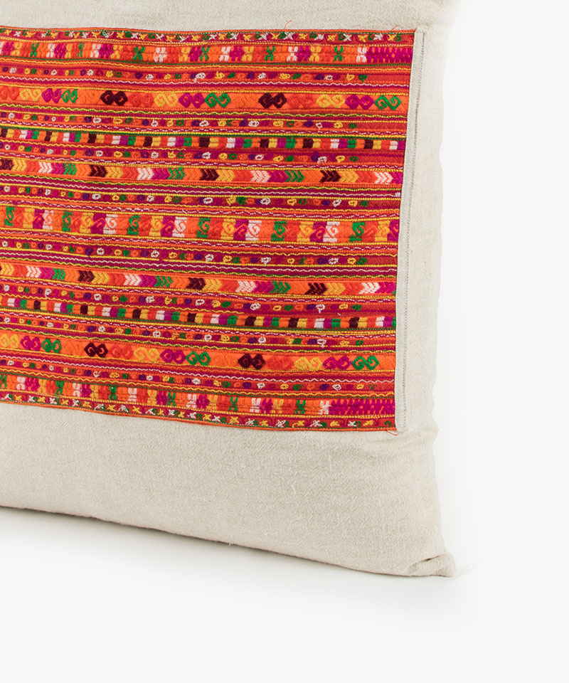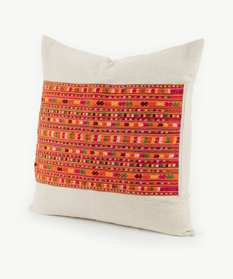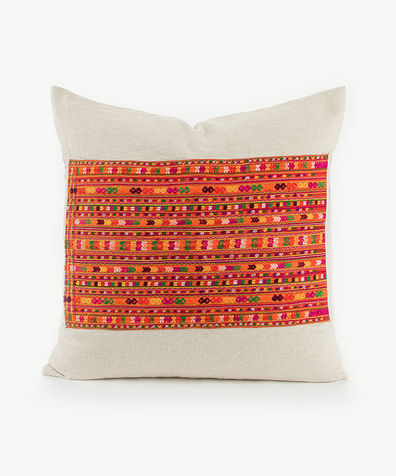 Our hill tribe cushions are made from authentic Hmong and Lisu textiles, sourced directly from hill tribe villages and textile markets in Northern Thailand and S.E Asia.