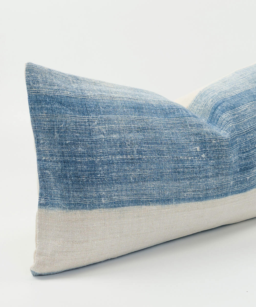 A CLASSIC INDIGO LUMBAR PILLOW MADE FROM VINTAGE ETHNIC TEXTILES